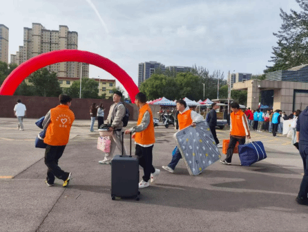 报到当天,学院领导亲临现场慰问指导,与新生及家长亲切交流,耐心解答疑问,传递学院的关怀与重视。志愿者们早早到岗,身着统一服装,精神饱满地忙碌在校园各处:他们主动协助搬运行李,引导办理报到手续,耐心介绍校园环境、专业概况与生活指南,为新生提供“一站式”贴心服务。报到点的老师和志愿者认真审核材料、高效办理手续,确保每位新生顺利入学。