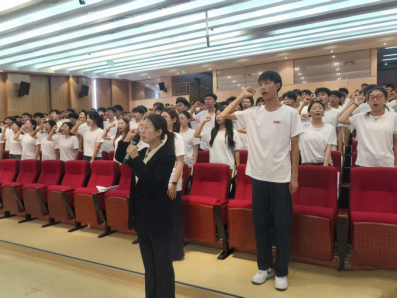 典礼最后,全体新生在分团委负责人卢中华老师的带领下庄严宣誓,铿锵誓言坚定了同学们秉承校训精神,勤奋学习,为中华民族伟大复兴贡献青春力量的决心。
